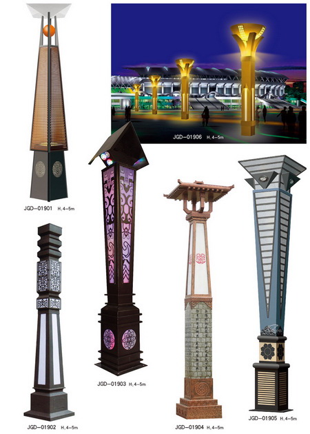 景觀燈分類:城市標志性景觀燈、仿古景觀燈、鏤空現代景觀燈、不銹鋼景觀燈、藝術造型景觀燈等